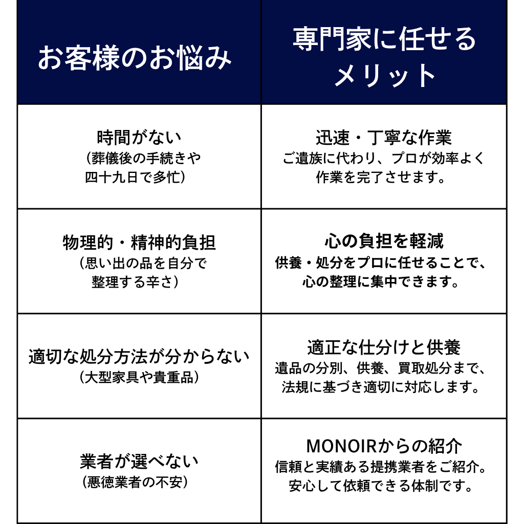 このデリケートな時期に、安心して依頼できる専門家に出会ってほしい。
